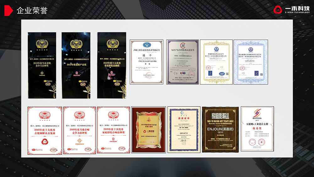 20年的音視頻行業(yè)經(jīng)驗(yàn)積累,獲得多項(xiàng)企業(yè)榮譽(yù)資質(zhì),行業(yè)項(xiàng)目施工資質(zhì),產(chǎn)品榮獲多項(xiàng)榮譽(yù)證書。