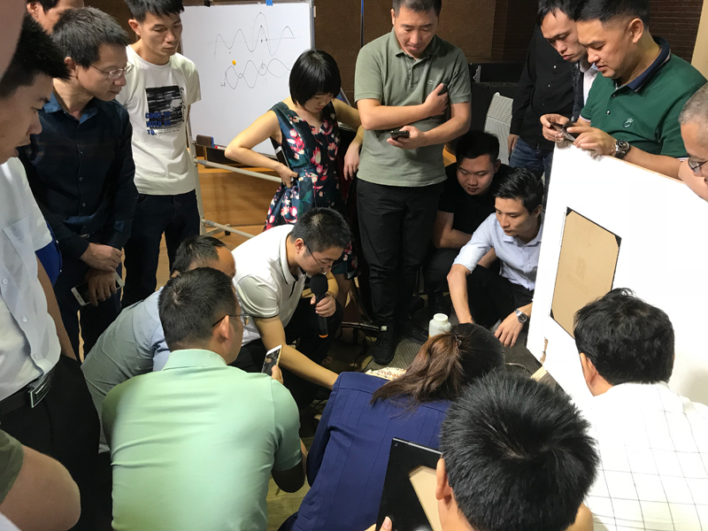 《家庭影院音箱布局及影院方案講解》與《產(chǎn)品安裝調(diào)試與實(shí)操》這兩門課程則由英嘉尼技術(shù)總監(jiān)朱文濤先生主講,涵蓋的影音知識面也十分廣泛。朱文濤先生結(jié)合大量實(shí)例,深入淺出地進(jìn)行講解,讓原本枯燥無味的專業(yè)技術(shù)課程也變得生動(dòng)有趣。在產(chǎn)品安裝調(diào)試與實(shí)操環(huán)節(jié),合作伙伴踴躍報(bào)名,積極參與產(chǎn)品調(diào)試。經(jīng)過一輪的實(shí)踐操作之后,都能很好地解決常見的影音設(shè)備安裝調(diào)試問題。