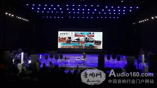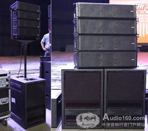 在演播廳內(nèi),由4只al-8線陣音箱和2只hs-28超低音的組合音箱系統(tǒng)堆疊在舞臺(tái)左右兩側(cè)。
