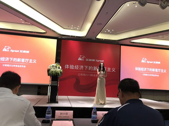 2018年6月9日,億格瑞新品發布會在深圳前海華僑城JW萬豪酒店隆重舉行,影音行業各媒體代表、億格瑞合作伙伴等均應邀出席。發布會上,億格瑞正式提出2018年品牌戰略主張為"體驗經濟下的新客廳主義",并正式亮相新客廳潮品:全景聲無線家庭影院M15和家庭云盤X6。