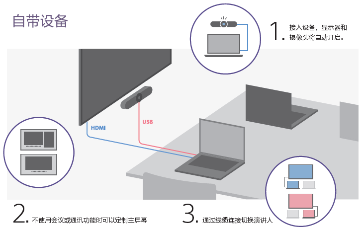 目前,有兩個配置可供選擇:用戶可選擇通過線纜連接自帶設(shè)備,開啟視頻會議;或通過觸摸屏一鍵管理會議,同時實現(xiàn)商務(wù)日歷平臺的集成。