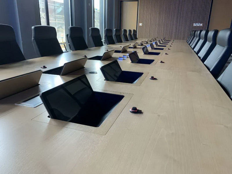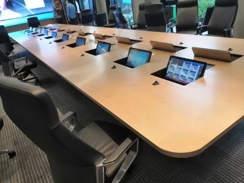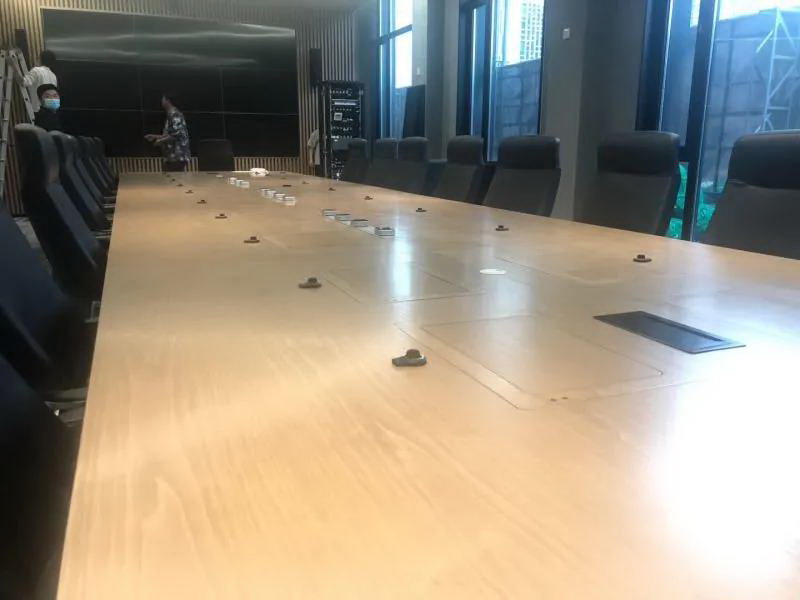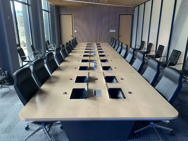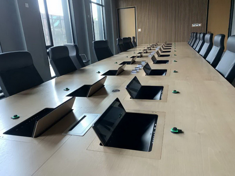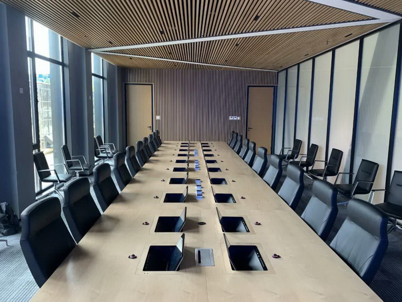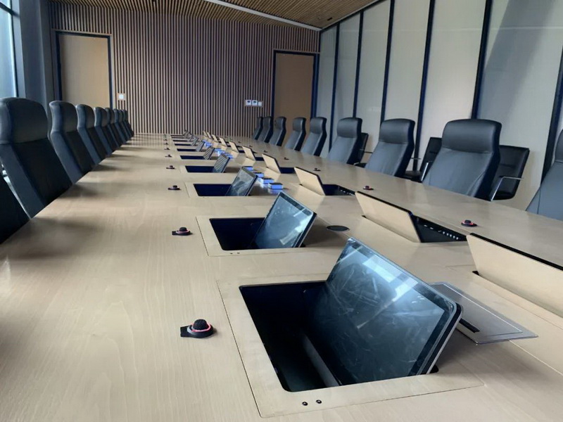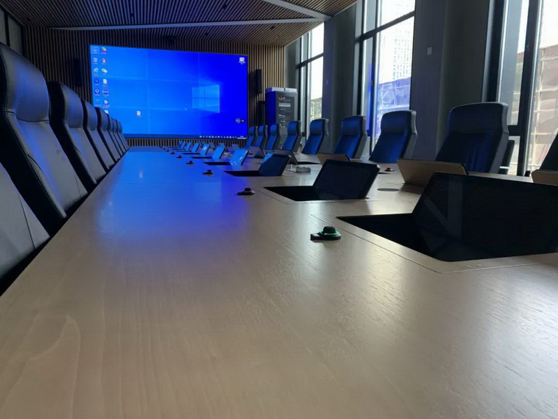 2、會議桌有升降式觸摸屏,既要配合好無紙化,話筒拾音必須達到最佳效果,無雜音。